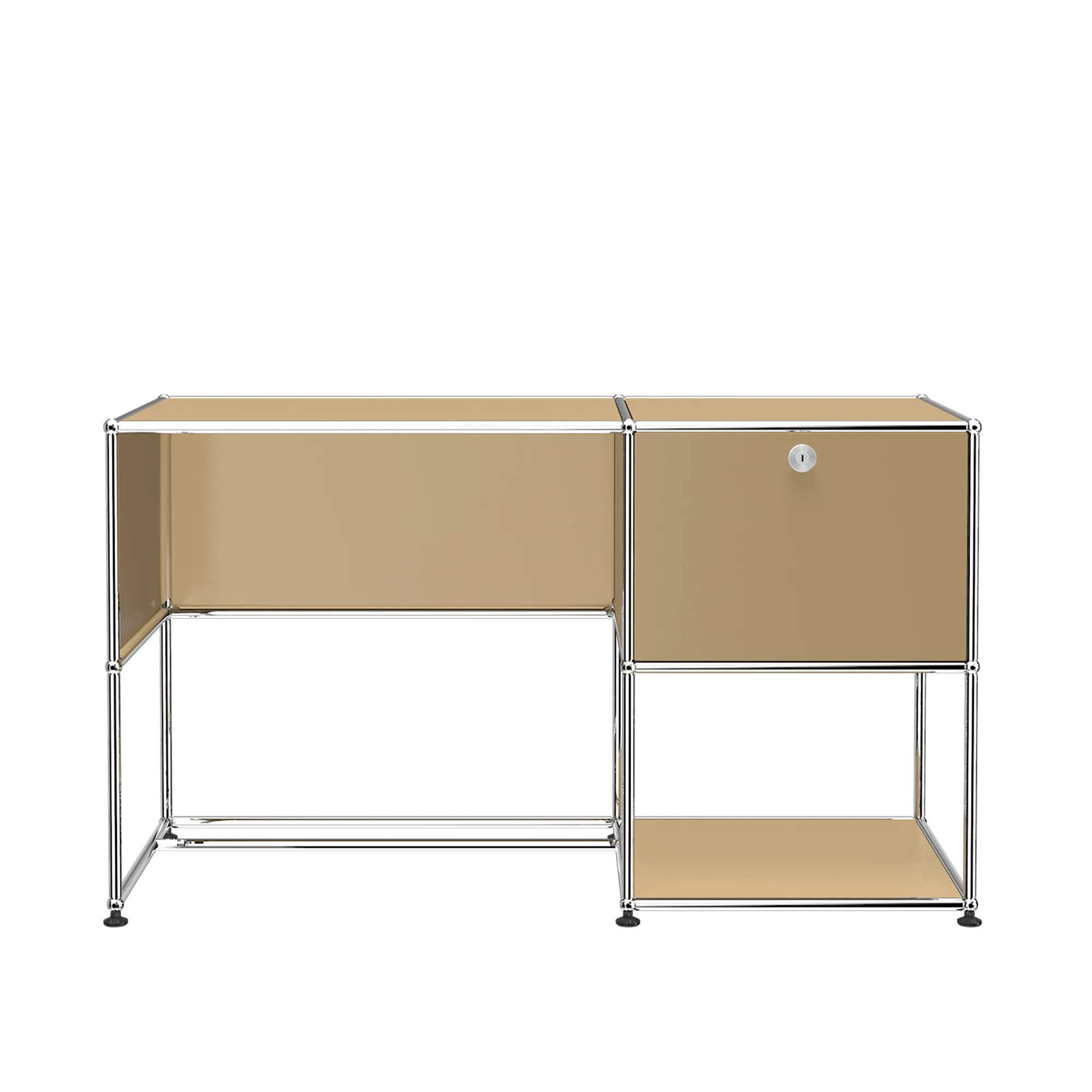 Observera att alla möbler med lådor från USM har säkrats för att minimera risken för skador under transport. Samtliga lådor är därför låsta och går enkelt att låsa upp genom att vrida med exempelvis en skruvmejsel på själva knoppen på lådorna. Var dock försiktig så att du inte repar möbeln. Tillverkad av nan. En klassiker inom skandinavisk design. Detta skrivbord är en av våra designexperters favoriter.